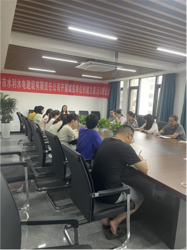 為進(jìn)一步貫徹落實(shí)我公司誠(chéng)信經(jīng)營(yíng)精神,促進(jìn)我公司更好發(fā)展,我公司于2021年6月3日下午,召開(kāi)誠(chéng)信單位創(chuàng)建主題活動(dòng)座談會(huì),公司董事長(zhǎng)主持大會(huì)工作,各部門(mén)員工參與會(huì)議。